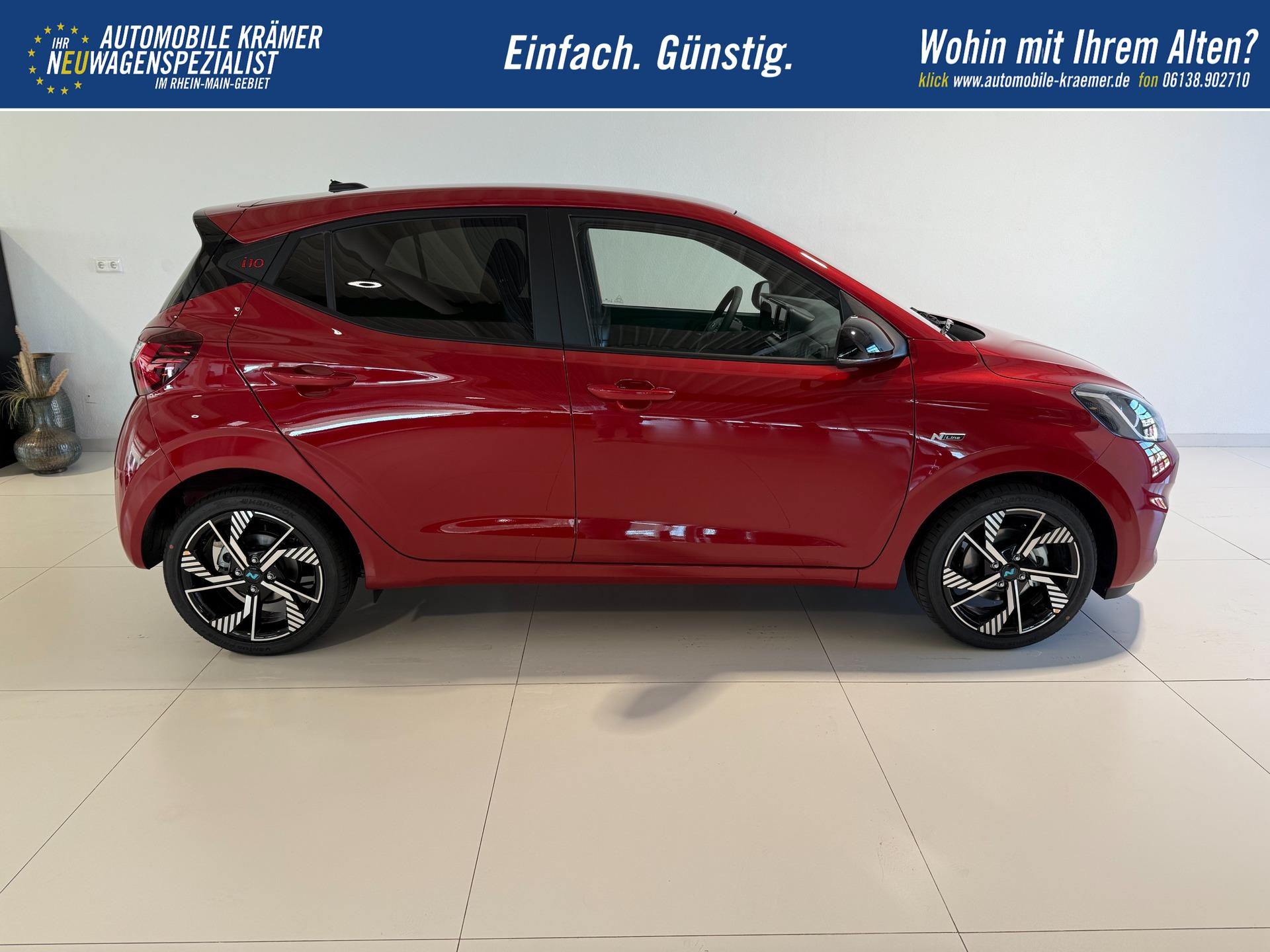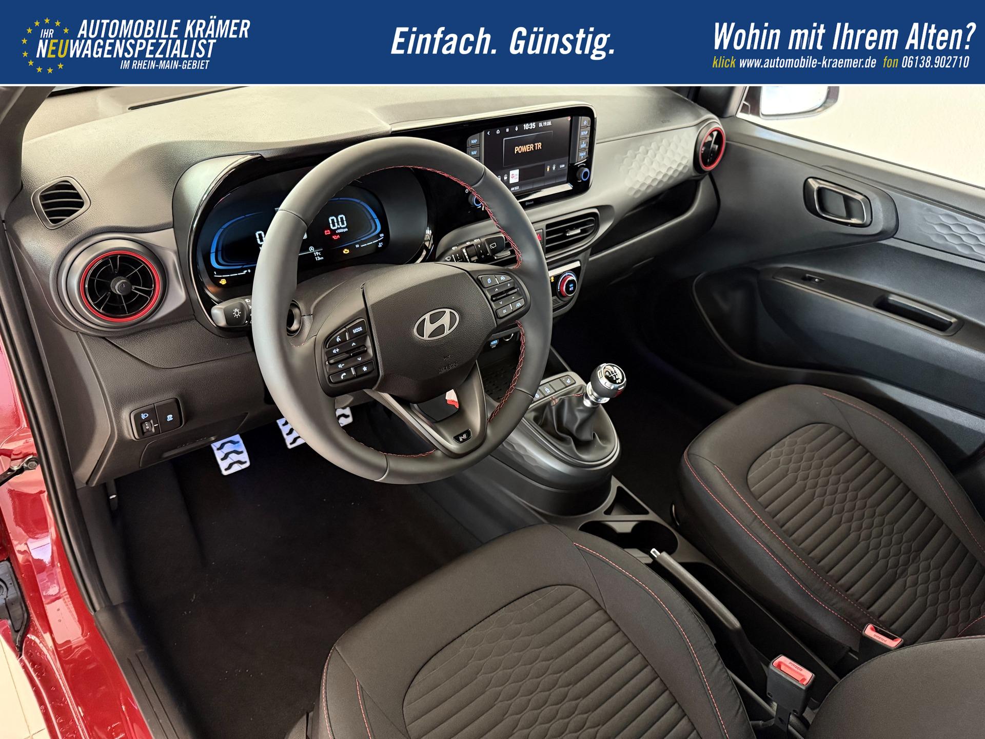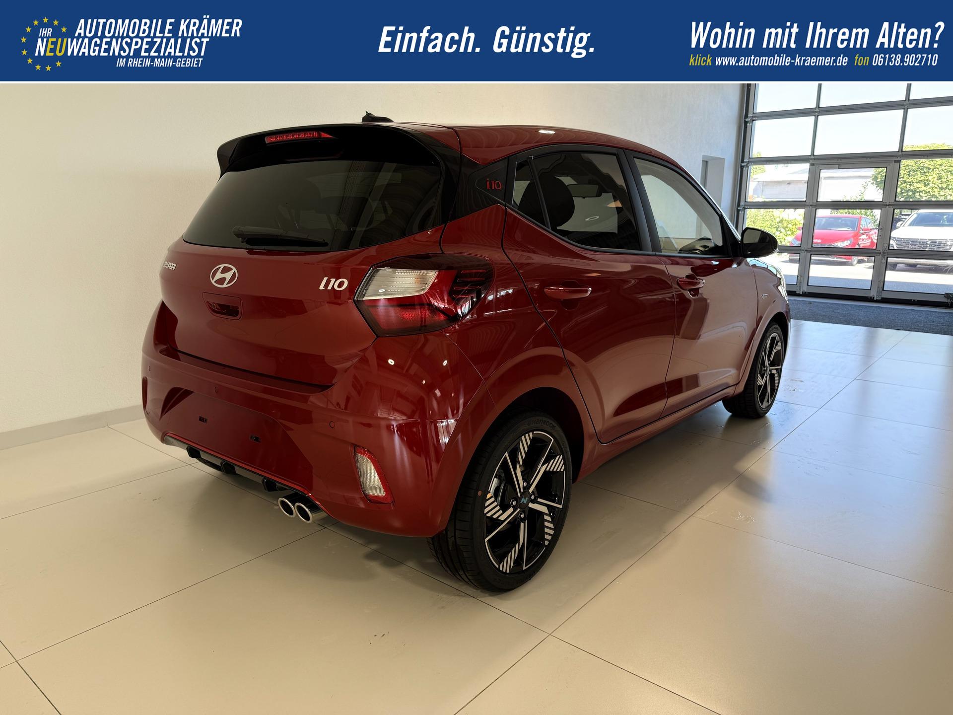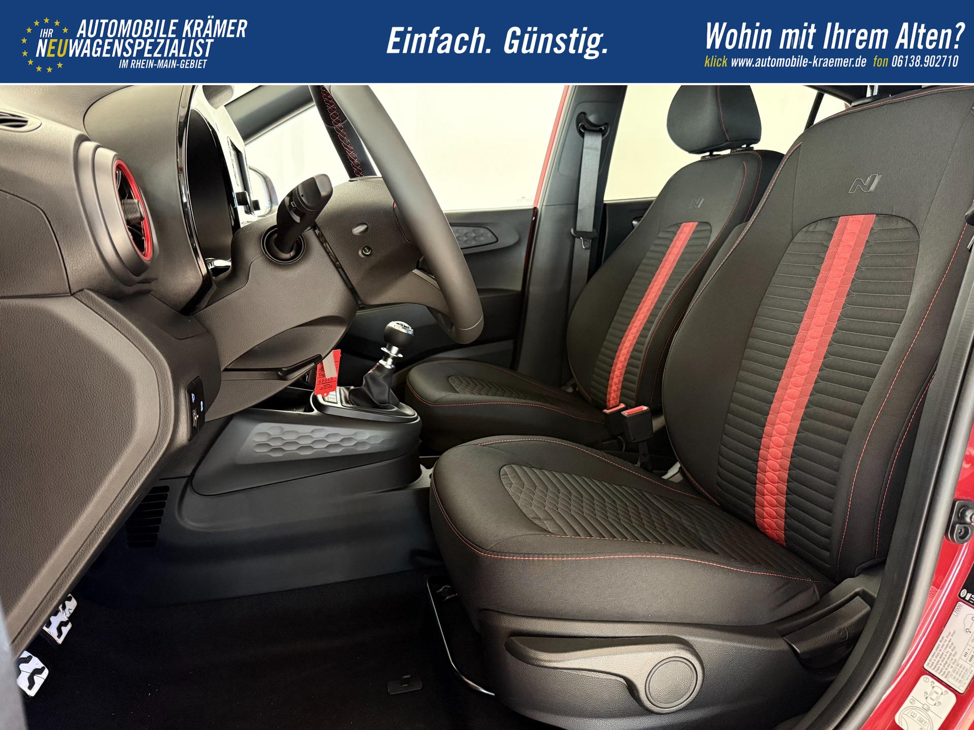 Hyundai i10 N Line 1.0 T-GDI 66 kW (90 PS) Line-Interieur-Paket, Lenkradheizung, Sitzheizung, Klimaautomatik, Radio, DAB, Apple CarPlay, Android Auto, Navigationssystem, Rückfahrkamera, Verkehrszeichenerkennung, Tempomat, 16 Zoll Leichtmetallfelgen, uvm.