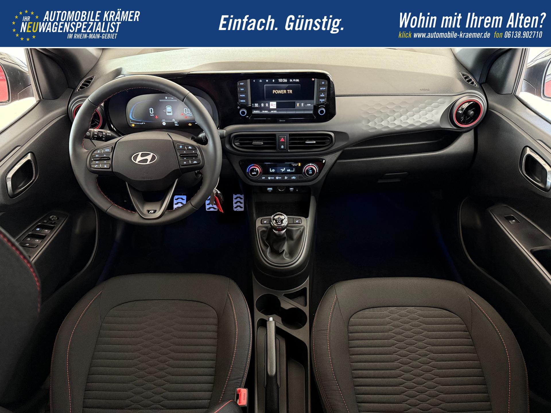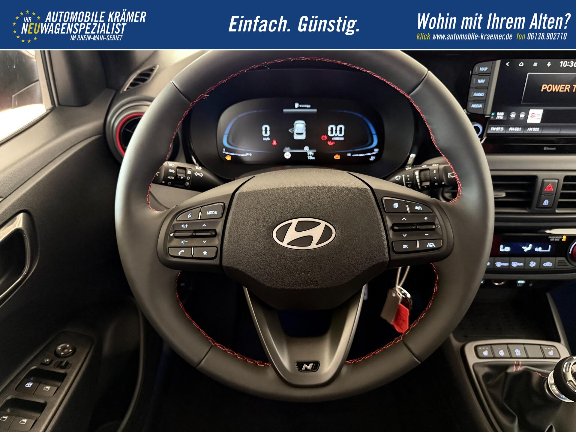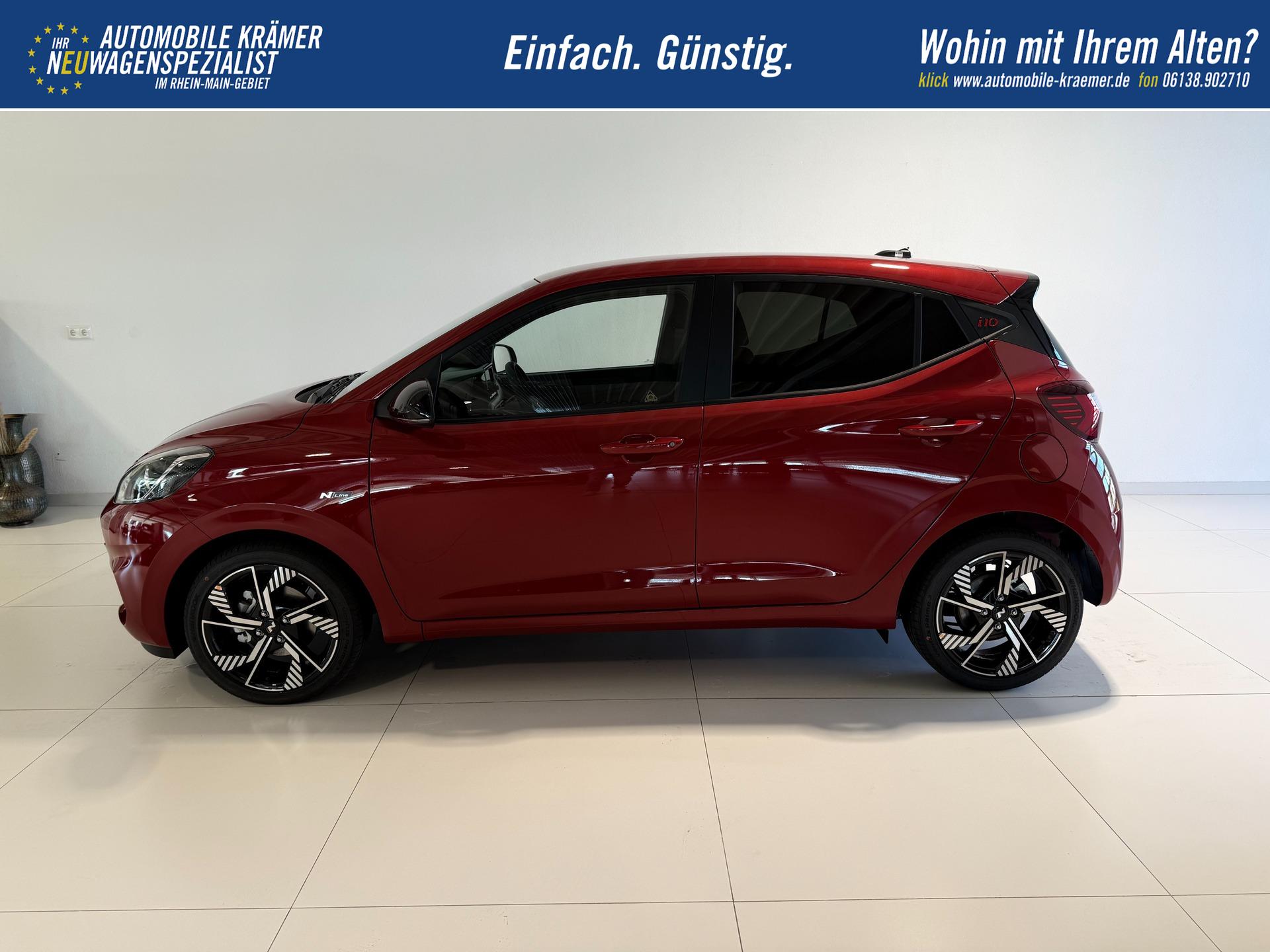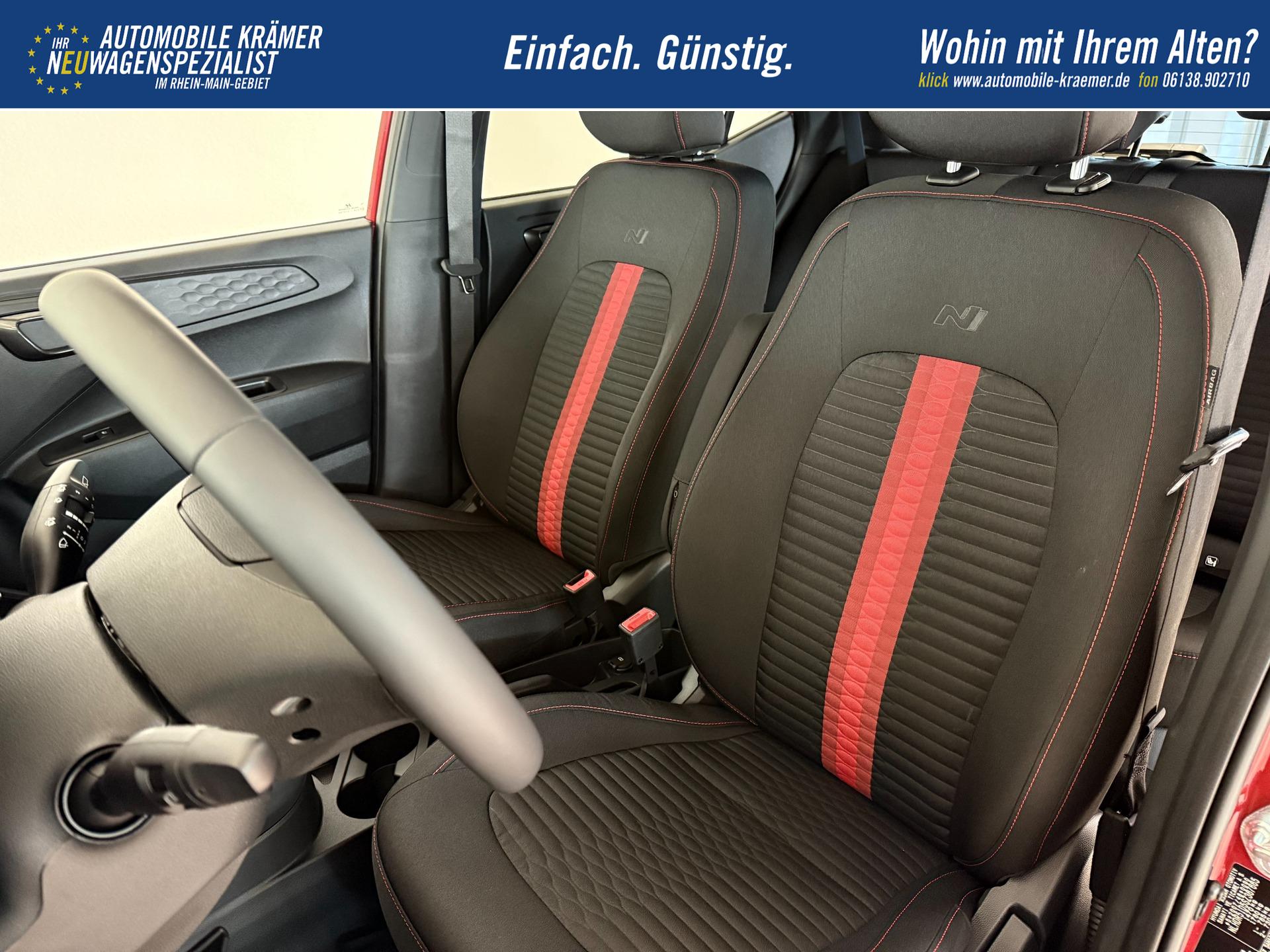 Hyundai i10 N Line 1.0 T-GDI 66 kW (90 PS) Line-Interieur-Paket, Lenkradheizung, Sitzheizung, Klimaautomatik, Radio, DAB, Apple CarPlay, Android Auto, Navigationssystem, Rückfahrkamera, Verkehrszeichenerkennung, Tempomat, 16 Zoll Leichtmetallfelgen, uvm.