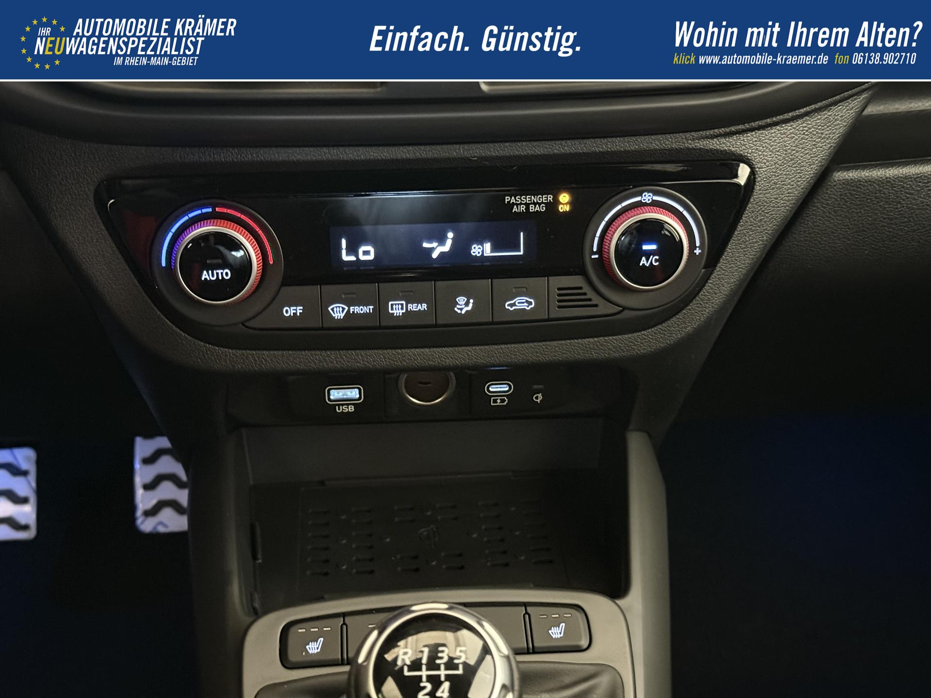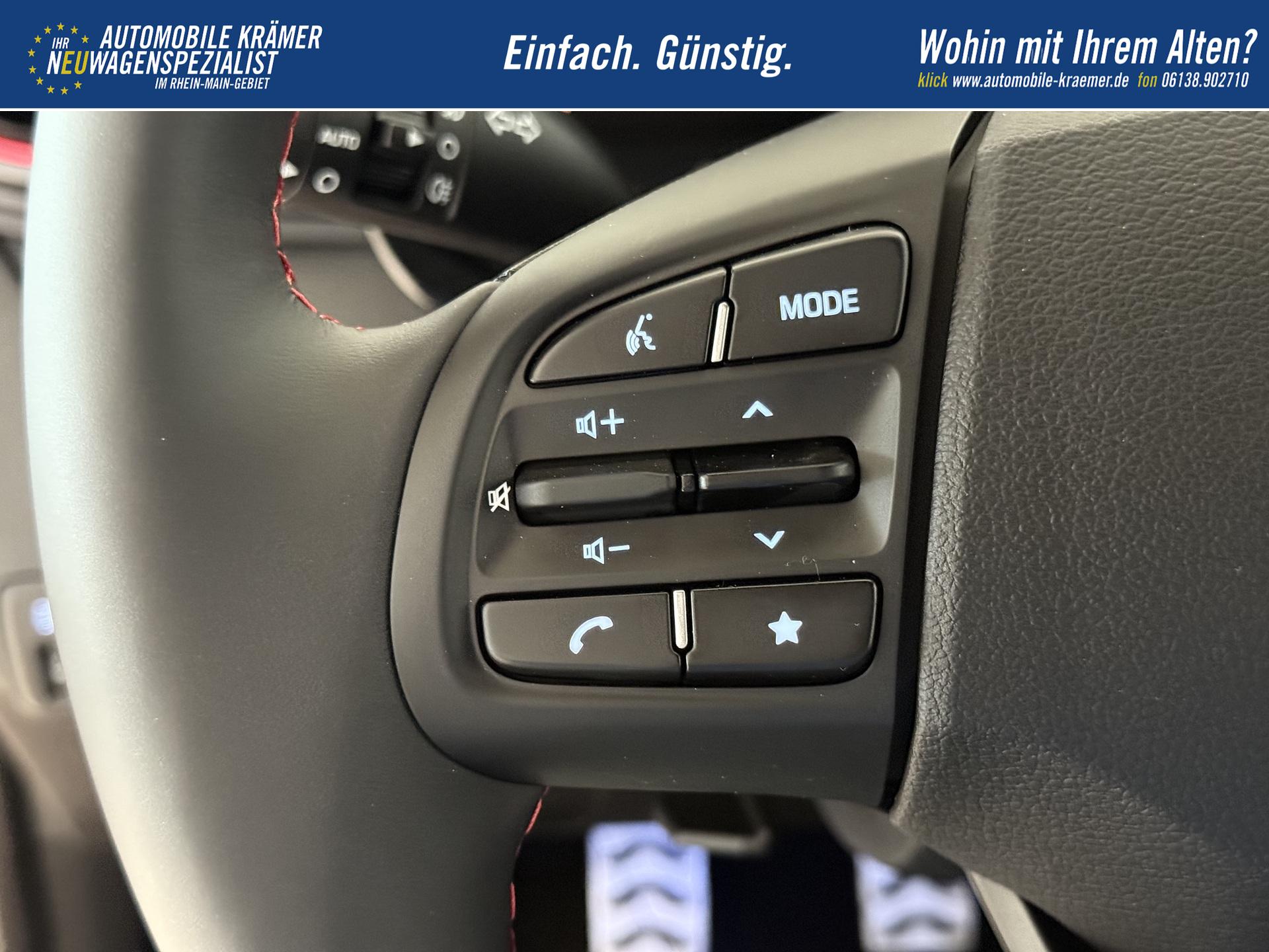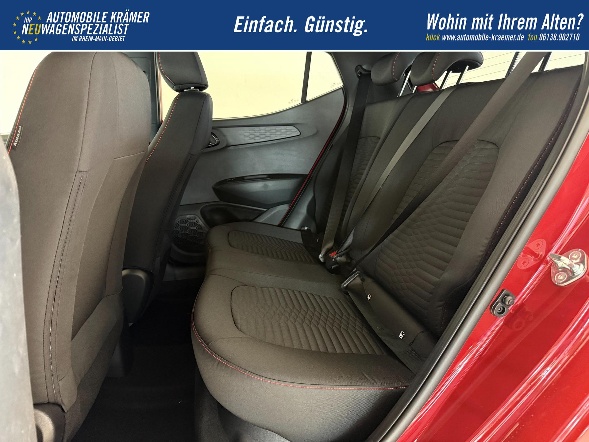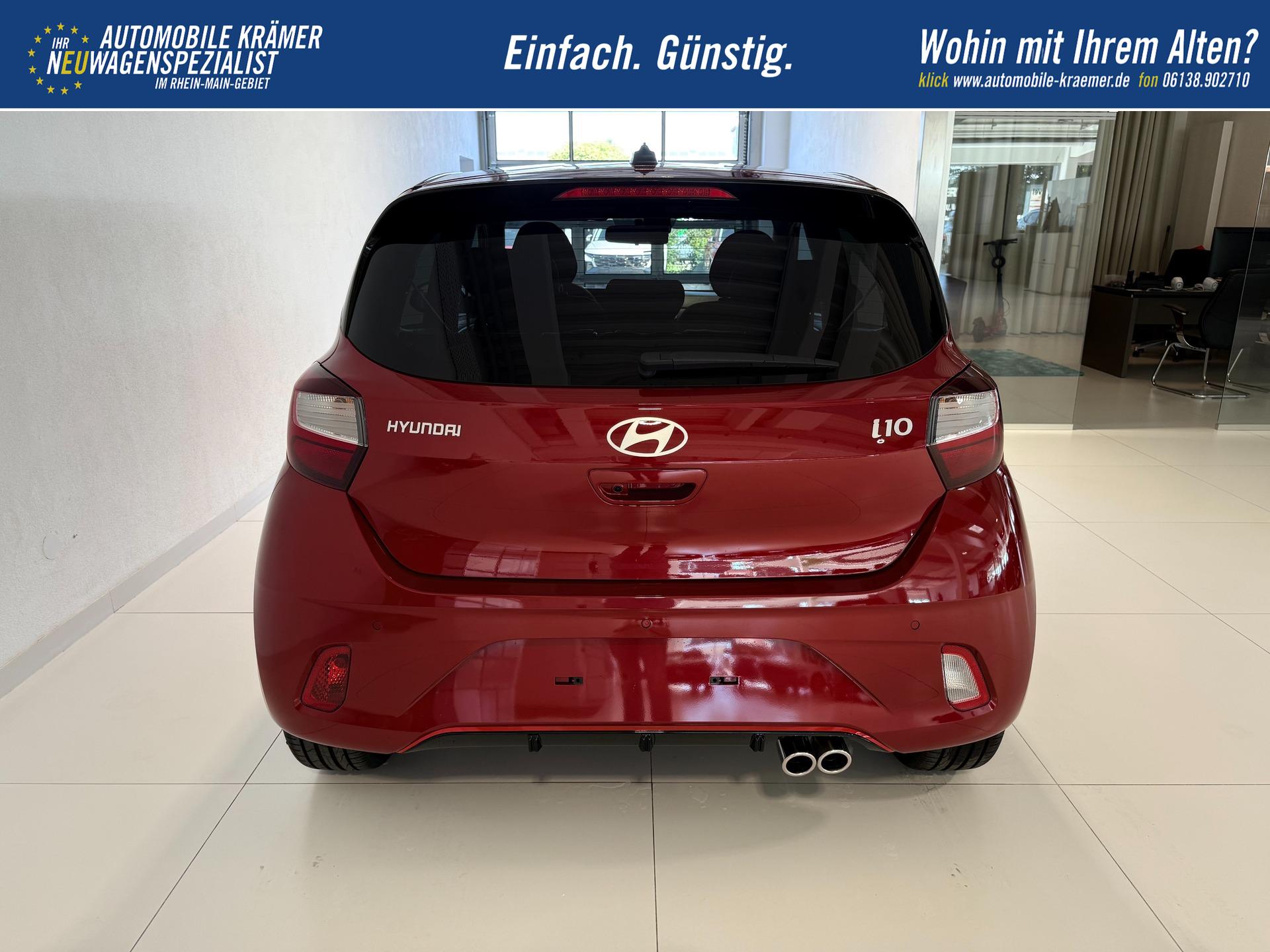 Hyundai i10 N Line 1.0 T-GDI 66 kW (90 PS) Line-Interieur-Paket, Lenkradheizung, Sitzheizung, Klimaautomatik, Radio, DAB, Apple CarPlay, Android Auto, Navigationssystem, Rückfahrkamera, Verkehrszeichenerkennung, Tempomat, 16 Zoll Leichtmetallfelgen, uvm.