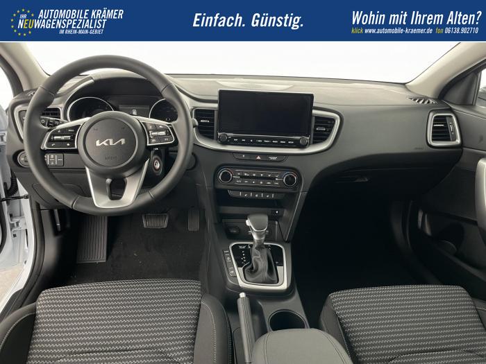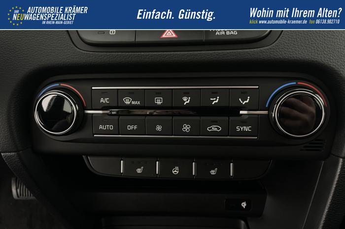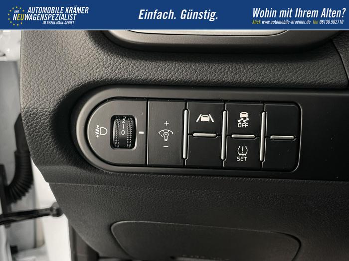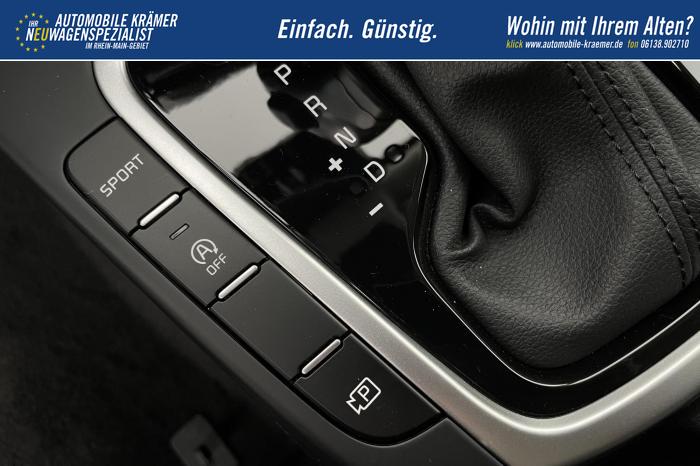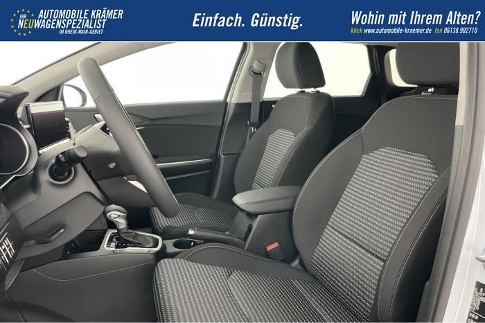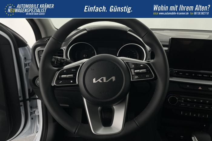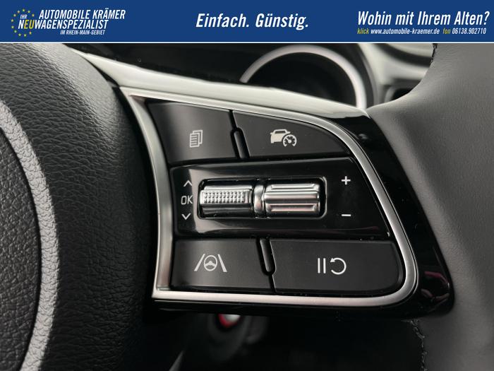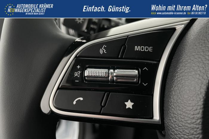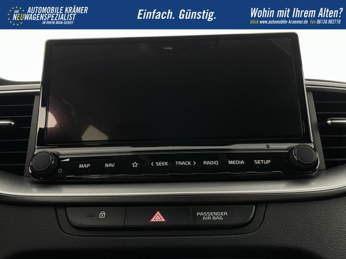10,25'' integriertes Navigationssystem, DAB, Kia Connect, Android Auto/Apple CarPlay, Bluetooth-Freisprecheinrichtung, Kabellose Smartphone-Ladestation, USB 2.0 + USB-C Schnellladeanschlüsse in der Mittelkonsole, Fernlichtassistent (HBA), LED-Hauptscheinwerfer, LED-Nebelscheinwerfer, LED-Tagfahrlicht, Abgedunkelte Scheiben ab der B-Säule, Elektrische Fensterheber vorne und hinten, Armlehne hinten, Bedienung des Audiosystems am Lenkrad, Handschuhfach mit Beleuchtung, Lederlenkrad, Lenkradheizung, Mittelarmlehne vorn mit Ablagefach, 2-Zonen Klimaautomatik, 16'' Leichtmetallfelgen, Notrad, Antiblockiersystem, Beifahrerairbag deaktivierbar, Elektronisches Stabilitätsprogramm, Fahrer- und Beifahrerairbag, Seitenairbags für Vordersitze, ISOFIX-Kindersitzbefestigung auf den äußeren Rücksitzen, Höhenverstellbarer Fahrersitz, Rückbanklehne geteilt umklappbar im Verhältnis 60/40, Sitzheizung vorne, 12V-Steckdose in der Mittelkonsole, Aktiver Spurhalteassistent/ Spurfolgeassistent, Berganfahrhilfe, Bordcomputer mit 4,2'' Supervision-Display, Bremsassistent, Frontkollisionswarner (Forward Collision Avoidance Assist, FCA)A mit Bremseingriff und Fußgänger- und Fahrrad erkennung, Erweiterung um Abbiegefunktion nur für DCT7, Intelligente Geschwindigkeitsbegrenzung ISLA, Müdigkeitserkennung des Fahrers, Parksensoren hinten, Regensensor, Reifendruckkontrollsystem, Rückfahrkamera, Tempomat mit Geschwindigkeitsbegrenzer, Zentralverriegelung mit Fernbedienung + Klappschlüssel, Außenspiegel elektrisch anklappbar, Außenspiegel elektrisch beheiz-, und einstellbar, Dachreling, Kühlergrill schwarz/chrom, EU-Fahrzeug mit Tageszulassung
