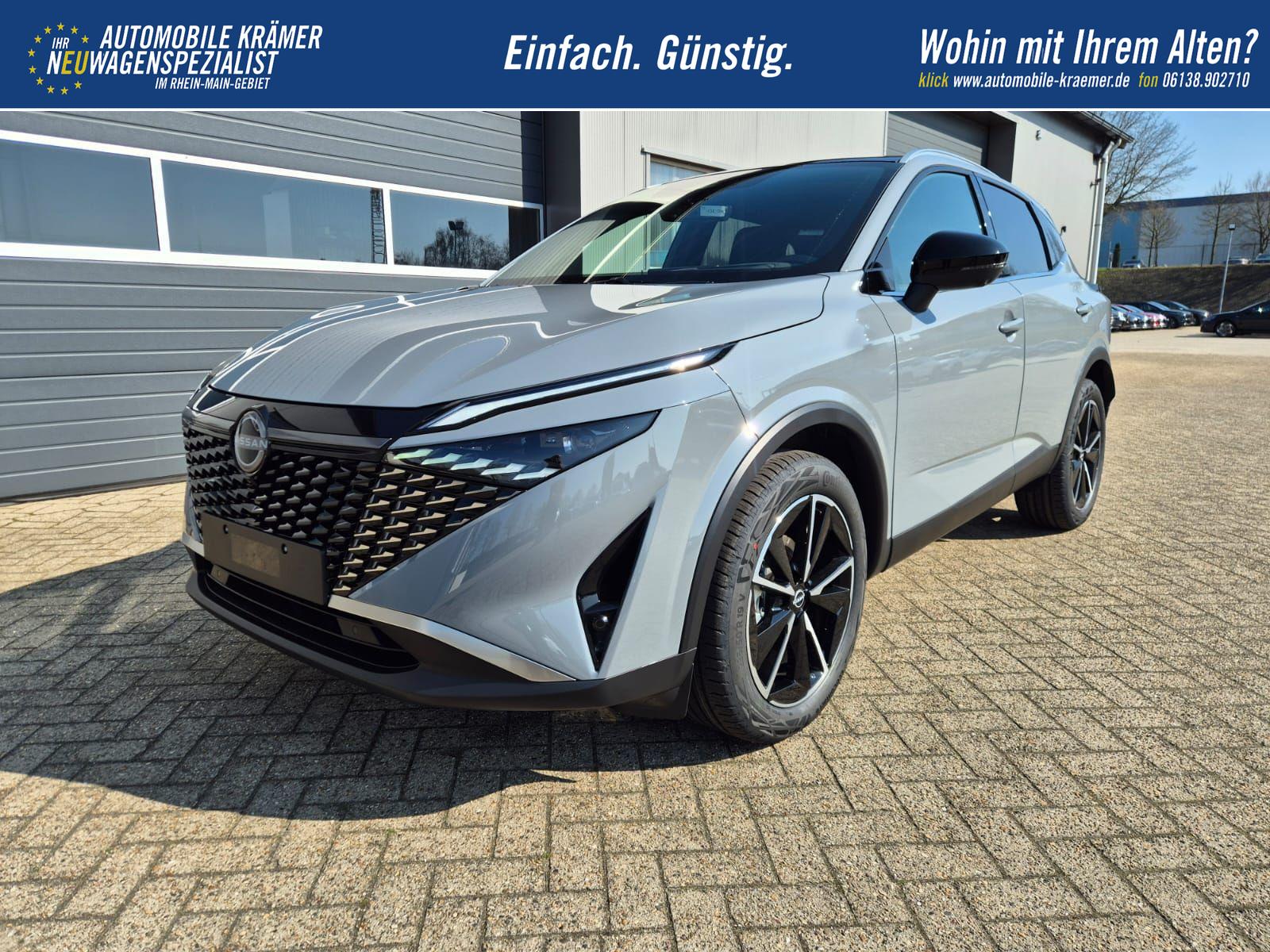 Nissan Qashqai 1.3 DIG-T MHEV 158 PS X-Tronic Tekna Voll-Leder Klimaautomatik PanoGlasdach Sitzheizung Lenkradheizung Navi Head-Up Display elektr. Heckklappe ACC PDC v+h 360°Kamera DAB Bluetooth Touchscreen Apple CarPlay Android Auto 19"LM