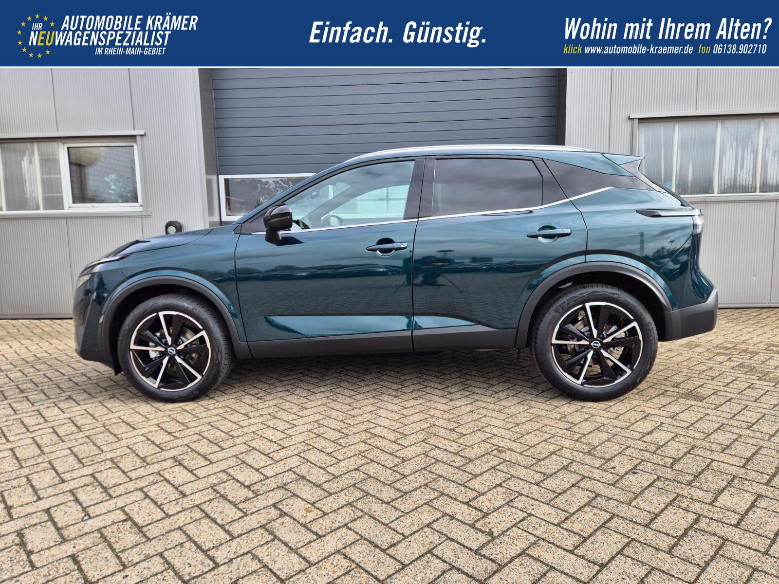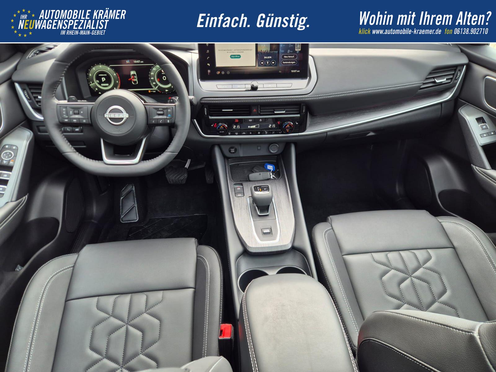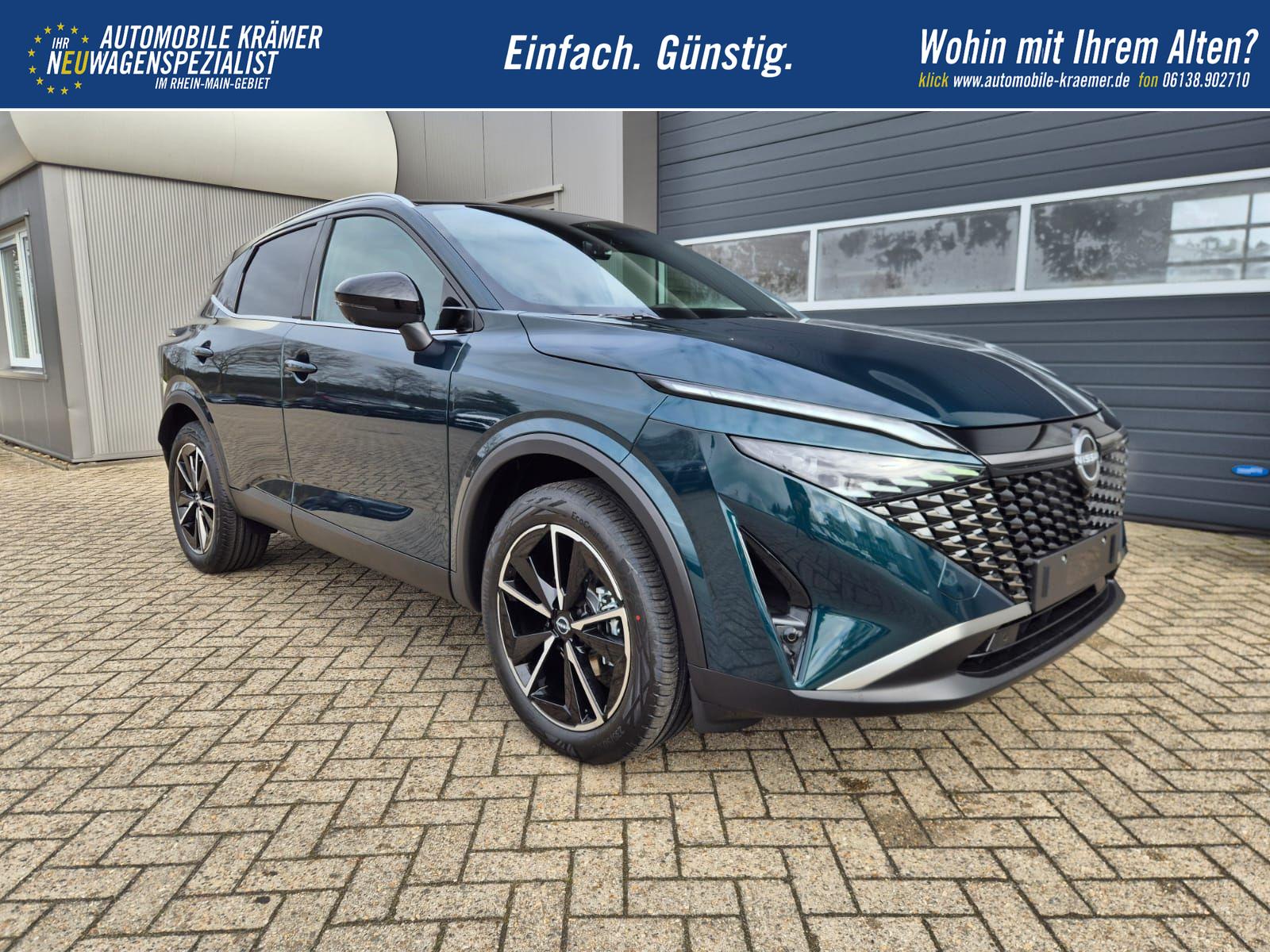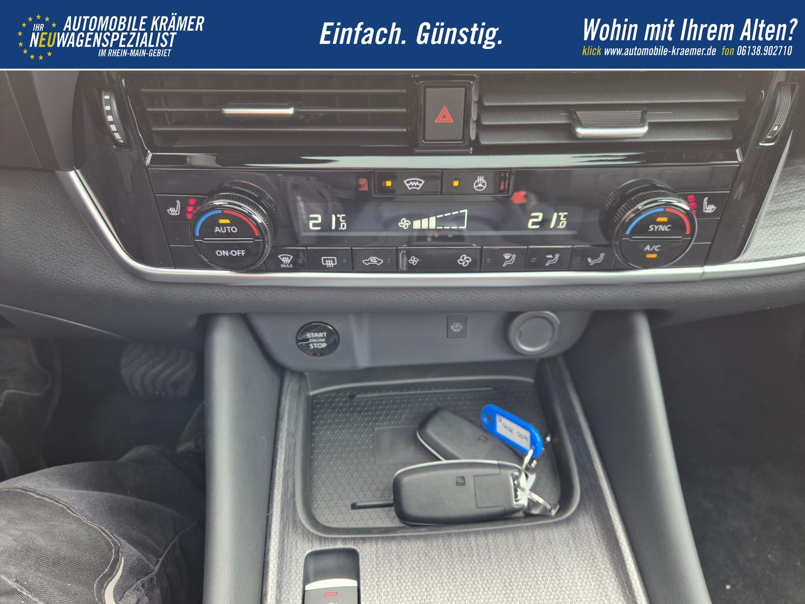 Nissan Qashqai 1.3 DIG-T MHEV 158 PS X-Tronic Tekna Voll-Leder Klimaautomatik PanoGlasdach Sitzheizung Lenkradheizung Navi Head-Up Display elektr. Heckklappe ACC PDC v+h 360°Kamera DAB Bluetooth Touchscreen Apple CarPlay Android Auto 19"LM