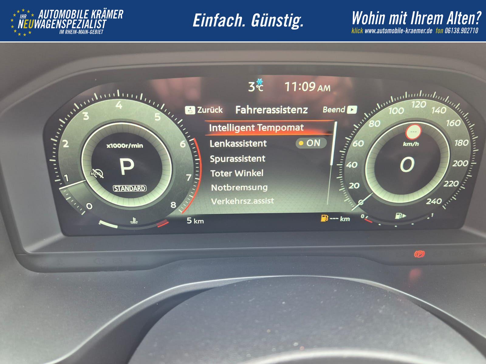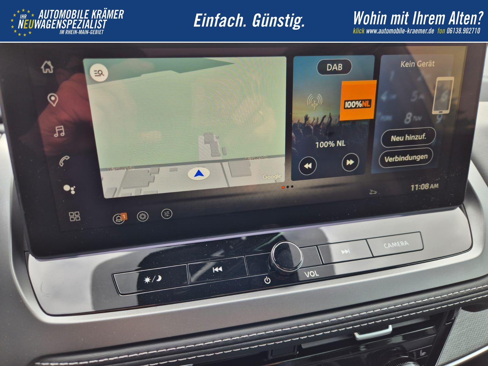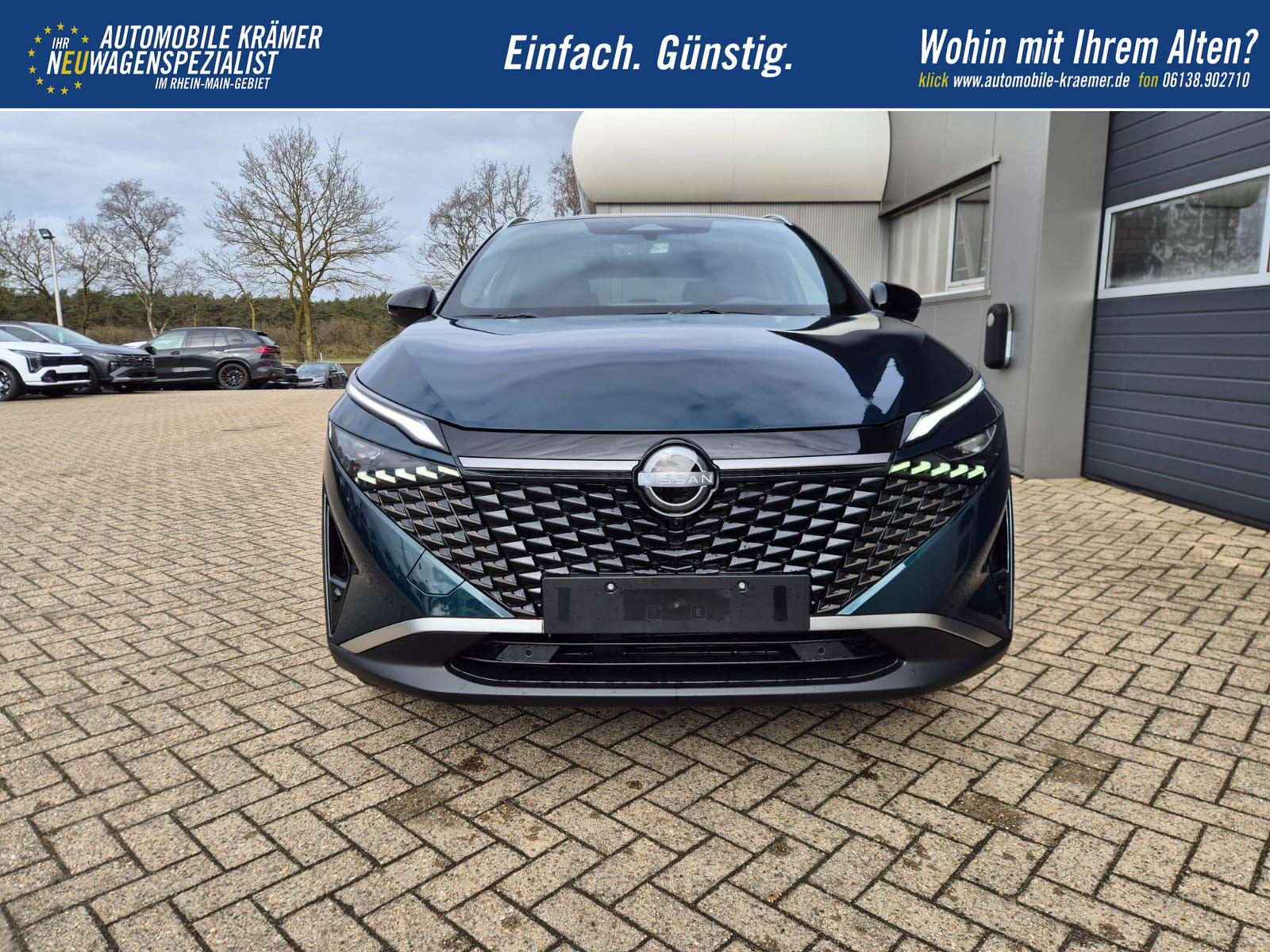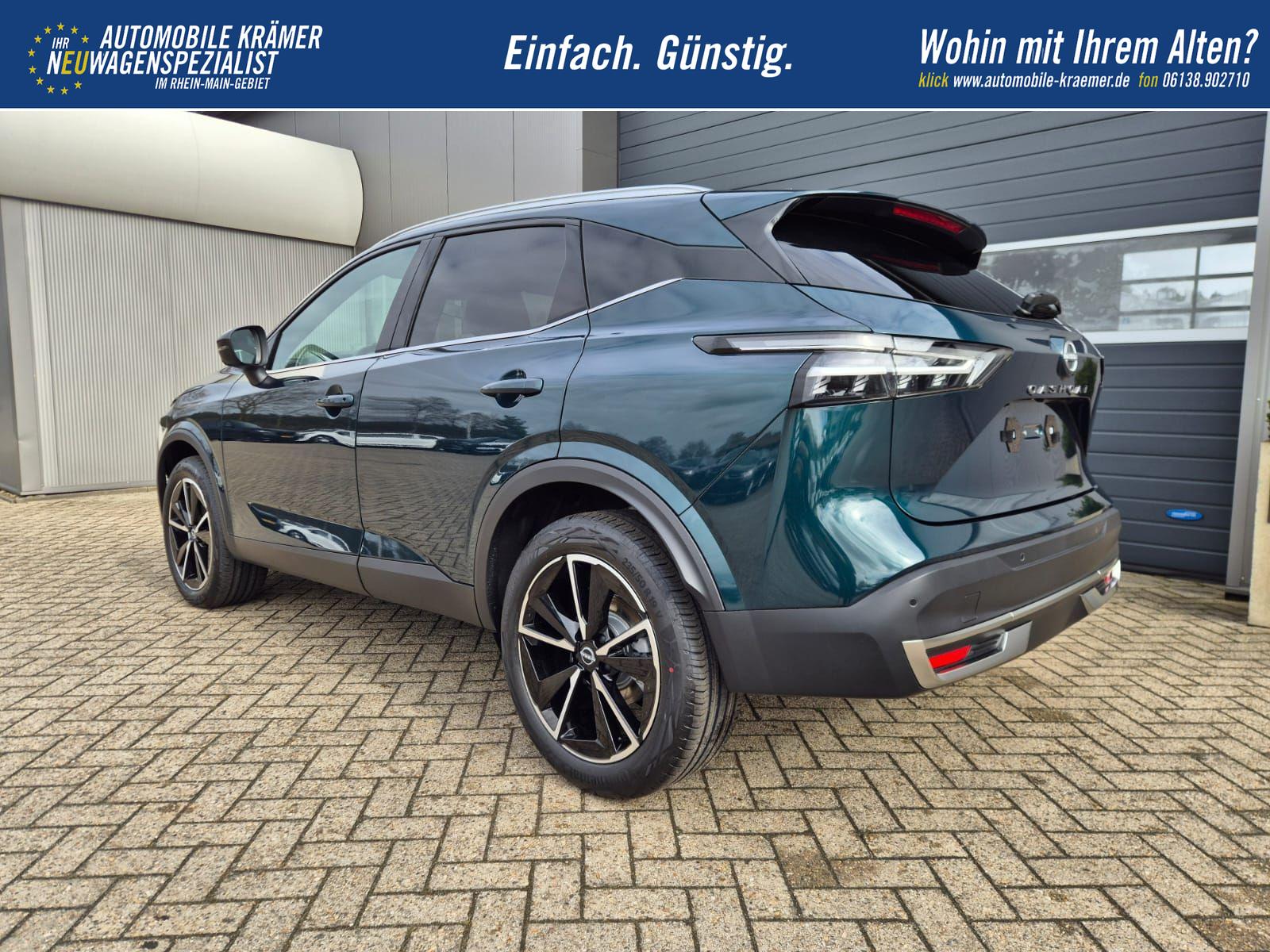 Nissan Qashqai 1.3 DIG-T MHEV 158 PS X-Tronic Tekna Voll-Leder Klimaautomatik PanoGlasdach Sitzheizung Lenkradheizung Navi Head-Up Display elektr. Heckklappe ACC PDC v+h 360°Kamera DAB Bluetooth Touchscreen Apple CarPlay Android Auto 19"LM