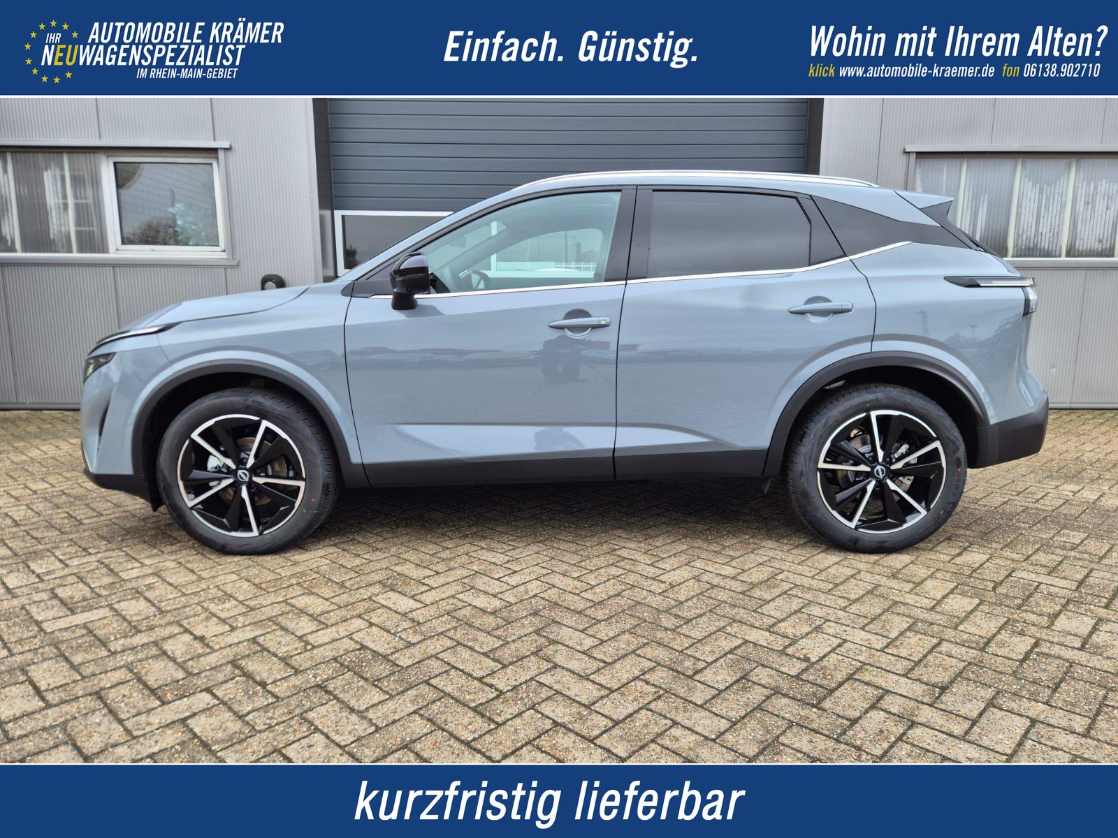 Nissan Qashqai 1.3 DIG-T MHEV 158 PS X-Tronic Tekna Voll-Leder Klimaautomatik PanoGlasdach Sitzheizung Lenkradheizung Navi Head-Up Display elektr. Heckklappe ACC PDC v+h 360°Kamera DAB Bluetooth Touchscreen Apple CarPlay Android Auto 19"LM