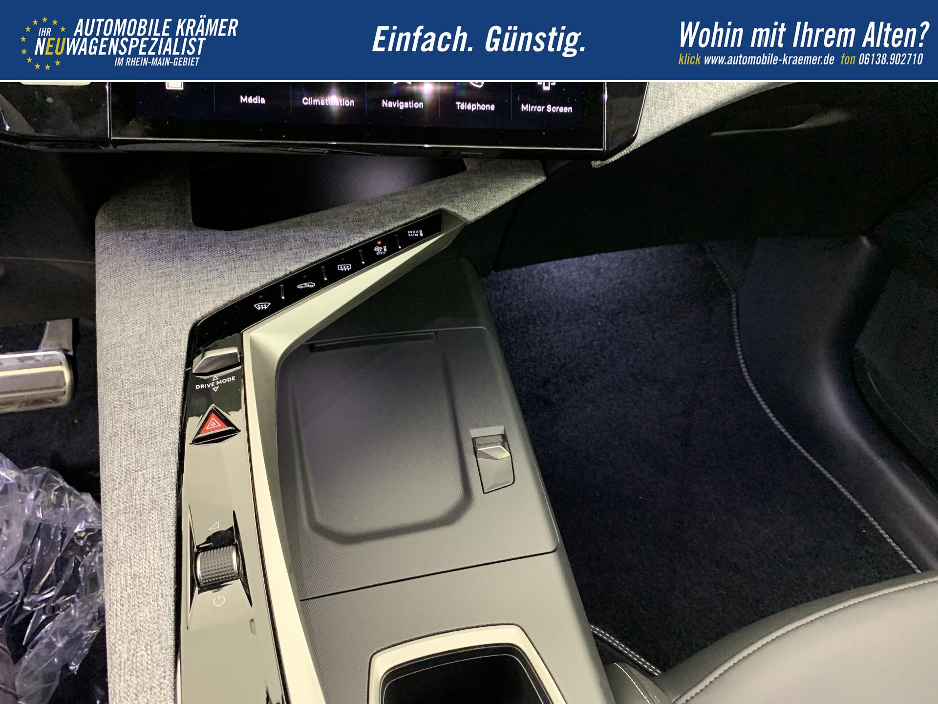 • Indirekte Tag- und Nacht-Ambientebeleuchtung auf dem Armaturenbrett, den vorderen Turverkleidungen und unter dem 21"-Panoramabildschirm, die mit den Fahrmodi verknupft ist und in 8 Farben personalisiert werden kann.