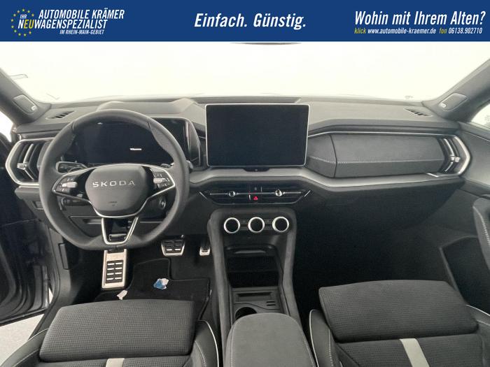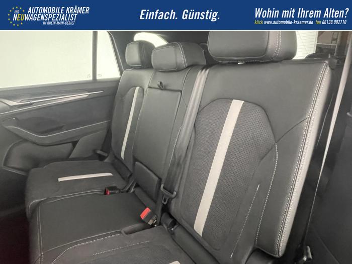 13 Lautsprecher, Bluetooth, CANTON Soundsystem, Freisprecheinrichtung, Navigationssystem 13'', Smart Link, USB-C-Anschlüsse vorne und hinten an der Mittelkonsole, USB-C-Anschluss im Innenspiegel, Automatisch abblendendes Fernlicht, Beleuchtete Türgriffe und Innenbeleuchtung, Follow-Me-Home-Funktion, Fussraumbeleuchtung, LED-Heckleuchten mit animierten Blinkern und roter Leiste zwischen den Leuchten, LED-Innenbeleuchtung, Lichtsensor, Matrix-LED-Hauptscheinwerfer, Akustikverglasung in den vorderen Seitenscheiben , Elektrisches Panorama-Glas-Schiebedach mit Sonnenblende, Fensterheber elektrisch vorne und hinten, Sunset (Heck- und hintere Seitenscheiben dunkel getönt), 3-Speichen-Sport Multifunktionslederlenkrad mit DSG-Bedienelementen, beheizbar, Fußmatten, Mittelarmlehne vorne und hinten, Pedale in Edelstahloptik, Spiegel automatisch abblendbar, Variabler Laderaumboden im Kofferraum, Heckscheibenwischer mit Waschanlage, Klimaanlage Climatronic (3-Zonen), Assisted Drive Paket, Komfort Plus Paket, LED-Plus Paket, Parkhilfe Remote- Paket, Technologie-Plus Paket, 19'' Leichtmetallfelgen ''Tirsuli'', Reserverad, Alarmanlage, Beifahrerairbag deaktivierbar, Elektronische Bremskontrolle ESBS, Elektronische Differentialsperre XDS und EDS, Elektronische Kindersicherung für die hinteren Türen, Elektronische Stabilitätskontrolle ESC mit Antiblockiersystem ABS, Elektronische Wegfahrsperre, Isofix (Kindersitzbefestigung), Kollisionsvermeidungssystem MCB, Notrufsystem, Traktionskontrolle ASR, Vorder-, Seiten- und weitere Airbags, 3. Sitzreihe (7-Sitze) inkl. variabler Laderaumboden im Gepäckraum, Beheizbare Vordersitze, Beifahrersitz mit Lendenwirbelstütze, Elektrisch einstellbare Vordersitze mit Memory-Funktion, Fahrersitz mit Lendenwirbelstütze, Garantieverlängerung auf 5 Jahre oder max. 100.000 km, 12-V Steckdose im Kofferraum und in der Mittelkonsole, Abbiege- und Ausweichassistent (Emergency Steering and Turn Assist), Adaptiver Abstandsassistent ACC (Regelbereich bis 210 km/h) und Speedlimiter (Geschwindigkeitsbegrenzer), Area View (360° Umgebungskameras), Bergabfahrassistent, Bremsassistent HBA, Elektrische Heckklappenbedienung mit Komfortöffnung (virtual Pedal), Elektronische Parkbremse, Frontradarassistent mit Fußgänger- und Radfahrererkennung und City-Notbremsfunktion, Head-up-Display, Intelligenter Parkassistent (Intelligent Park Assist), KESSY (Schlüsselloses Zugangs- und Start-Stopp-System) und SAFE-System, Lane Assist mit Adaptive Lane Assist-Funktion, Müdigkeitserkennung, Parksensoren vorne und hinten , Regensensor, Reifendruckkontrollsystem, Reiseassistent (Notfallassistent und Stauassistent), Remote Park Assist, Spurwechsel- und Ausparkassistent (Side Assist), Trainiertes Parken (Trained Park Assist), Verkehrszeichenerkennung, Zentralverriegelung mit Funkfernbedienung, Start/Stopp-Automatik, Anhängerstabilitätskontrolle TSA, Anhängerzugvorrichtung schwenkbar inklusive Gespannstabilisierung und Anhängerrangierassistent, Dachreling Schwarz, Designelemente in schwarz glänzend (Außenspiegel, Frontgrill, Fensterrahmen), Elektrisch einstell-, beheiz- & anklappbare Außenspiegel inklusive Abblendung (Fahrerseite), Frontgrill mit horizontalem Lichtband, EU-Fahrzeug mit Tageszulassung