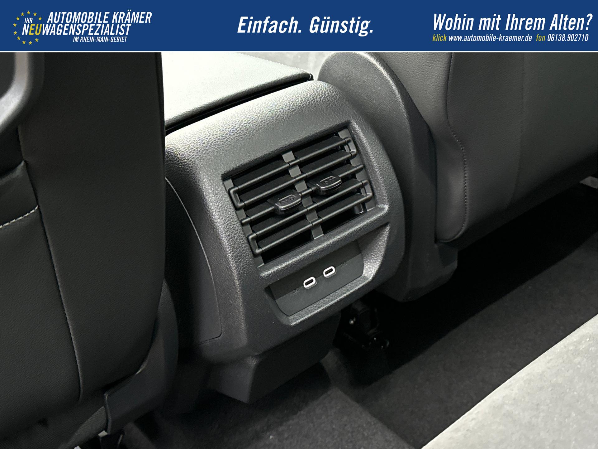• 2 USB-Schnittstellen (Typ C) in der Mittelkonsole vorne, 2 USB-Ladebuchsen (Typ C) an der Mittelarmlehne hinten vorhanden