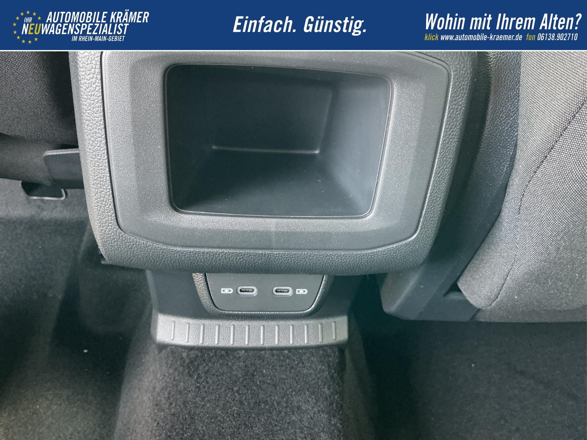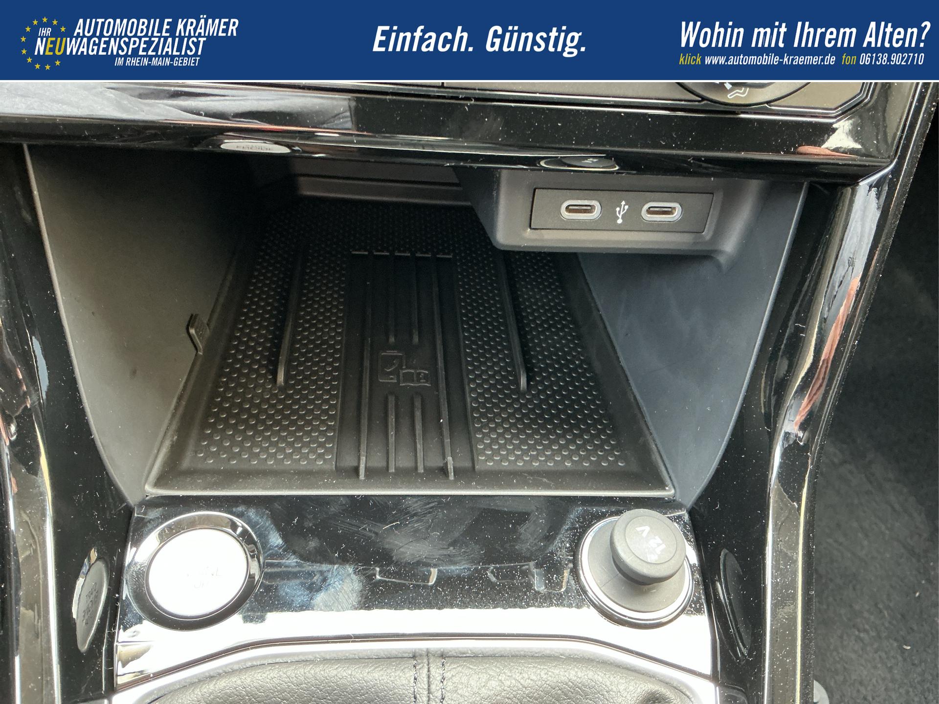 Mittelarmlehne vorne längsverstellbar, mit Stauraum, 2 USB-Ladebuchsen hinten