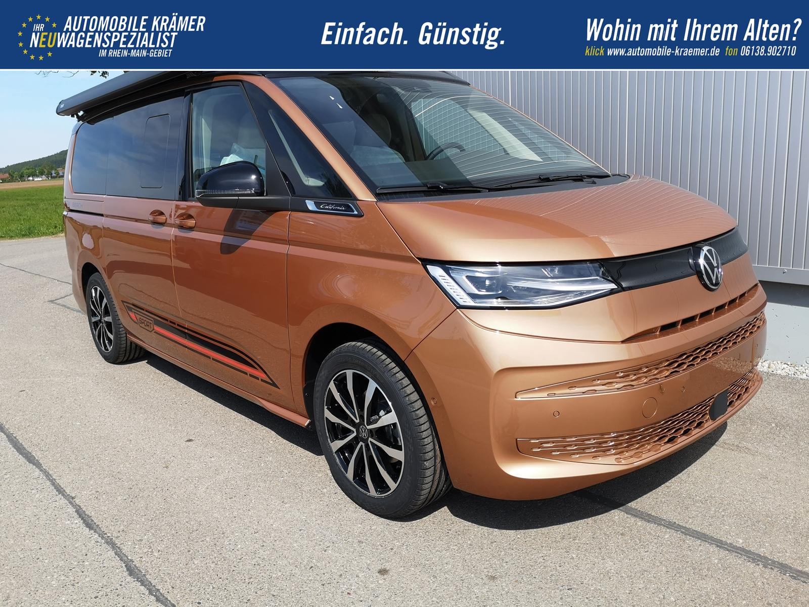 V2MSEP Sonderausstattung: Ausstattungsvariante Komfort+: (4A3) Sitz Fahrer/Beifahrer beheizbar, (N0B) Sitzbezüge Bi-Color Stoff ""Ribella"", (4S4) Fahrer/Beifahrersitz mit Armlehnen beidseitig inkl. elektrischer Lendenwirbelstütze, (7VL) Warmwasser-Standheizung im Fahrerhaus mit FFB zur Erwärmung des Fahrerhauses, mit Frontscheibenenteisung, Heizdauer bis zu 60 min., (9AH) Klimaanlage ""Air Care Climatronic"" 3 Zonen mit zusätzlichem Bedienteil im Fahrgastraum, (QH8) InCarCommunication ohne Sprachsteuerung, Sport Edition Paket: Sport Edition Schriftzug an Fahrzeugseite, Fahrzeugheck und im Fahrzeuginnenraum, Fahrzeug 8-fach-bereift, Leichtmetallräder 7,5J x 18 (Sport Edition Design TN28, schwarz glanzgedreht) mit Sommerreifen 235 50 R18, Alufelgen 6Jx16 ""Syrakus"" mit Winterreifen 215/65 R16 (M+S Kennung inkl. Schneeflocke). (1M6) Anhängevorrichtung anklappbar, (9CB) Innenleuchtenkonzept im Fahrgastraum, (U9E) USB-C-Schnittstelle vorne & hinten, 2 USB vorne, 4 USB im Fahrgastraum, (Z4D) Lichtpaket, Sicherheitsinnenspiegel, automatisch abblendbar Fernlichtassistent ""Light Assist"", Scheibenwischer-Intervallschaltung mit Regensensor für die Frontscheibenwischer, Leuchtweitenregulierung dynamisch, Schlechtwetterlicht inkl. Abbiegelicht, Tagfahrlichtschaltung mit Assistenzfahrlicht sowie Coming- und Leaving Home Funktion, (ZBT) Komfortsitze vorne drehbar, höhenverstellbar mit elektrischer Lendenwirbelstütze, inkl. Schubladen unter den äußeren Sitzen im Fahrersitz, Fahrgastraum und 2 Abfallbehälter, (ZEA) Zuzieh-Hilfe für die Heckklappe, (ZBP) Sitzvariante 2-2-2 mit Vis-a-Vis mit Armlehnen in der zweiten Sitzreige, 2 Einzelsitze entgegen der Fahrtrichtung in der 2. Sitzreihe, (Z8A) Fenster, Schiebefenster links + rechts, Fenster ab B-Säule abgedunkelt, 65% lichtabsorbierend, (ZT0) Zuziehhilfe Schiebetüre rechts + links, (1U3) Multifunktionstisch/Mittelkonsole mit 3 Becherhaltern im ganzen Fahrzeug verschiebbar. (7W7) Proaktives Insassenschutzsystem, (Z2H) Top Paket: Sonnenblenden mit Spiegel, beleuchtet, Tickethalter auf der Fahrerseite, mit Airbaglabel auf der Sonnenblende und B-Säule, Dynamische Fernlichtregulierung ""Dynamic Light Assist"", IQ.Light - LED-Matrix-Scheinwerfer mit LED-Tagfahrlicht, mit dynamischem Kurvenlicht, LED-Rückleuchten abgedunkelt, (Z2M) Assistenzpaket Basic inkl. Car2X, Spurwechselassistent ""Side Assist"" inkl. ""Blind Spot Detection"", Ausparkassistent und Ausstiegswarner, Automatische Distanzregelung ACC ""stop&go"", (Z2Q) ""Anhängerrangierassisten ""Trailerassist"" inkl. Rückfahrkamera ""Rear View"", Parklenkassistent ""Park Assist"". (NF1) Markise in schwarz, rechts. ausl. Ez 01.08.2025 und Garantiebeginn / 0 Km / Endverbrauchernachweis erforderlich. Serienausstattung: Sonstige: Zulassung als PKW, Werksanschlussgarantie auf 5 Jahre / max. 100.000 Km, Komfort und Funktion: Aufstelldach manuell, Faltenbalg grau mit 3 Fenstern und einer Frontöffnung, Faltenbalg in Basalt Grey, Digital Cockpit Pro, Multifunktions-Lederlenkrad mit Schaltwippen, 2 Schlafplätze im Aufstelldach oben (1.140 x 2.050 mm), Sitze vorne höhenverstellbar, Schiebetür links und rechts, Verdunklungssystem mit Kapuzengardinen und Magnetgardinen, Zentralverr. ""Keyless Start"", Optik: Außenspiegelgehäuse in Schwarz hochglanz, Bodenbelag im Fahrgastraum mit trittverstärktem Velours-Teppichboden, Scheinwerferleiste schwarz, Umfeldbeleuchtung Türbereich, Infotainment: Wireless Mirror Link/App-Connect, Navigation über App Connect möglich (kompatibles Smartphone erforderlich), Radio ""Ready 2 Discover"" mit 25,4 cm (10"") Touch-Farbdisplay, Lautsprecher 8 Stück, Bluetooth Schnittstelle, Sicherheit und Fahrerassistenz: Ablenkungs- und Müdigkeitserkennung, Außenspiegel, elektrisch einstell-, beheiz- und anklappbar, Einparkhilfe im Front- und Heckbereich, Notbremsassistent ""Front Assist"" mit Fußgänger- und Radfahrererkennung, Spurhalteassistent ""Lane Assist"", Verkehrszeichenerkennung. Alle Fotos können Beispielbilder sein und aufpreispflichtige Extras enthalten. Die genaue Ausstattung entnehmen Sie bitte dem Beschreibungstext
