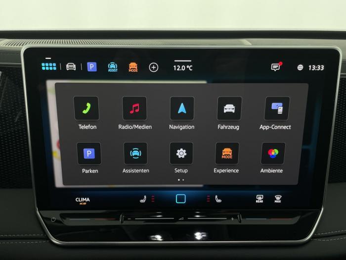 2 USB-C-Ladebuchsen an der Mittelkonsole hinten, 2 USB-C-Schnittstellen vorn, 8 Lautsprecher, App-Connect Wireless für Apple CarPlay und Android Auto, Digitaler Radioempfang DAB , Infotainment-Paket inkl. Navigationssystem Discover, Sprachbedienung, Telefonschnittstelle Comfort mit induktiver Ladefunktion, Touchscreen (32,2 cm/12,9 Zoll), 3D-LED-Rückleuchten, Abbiege- und Schlechtwetterlicht, Ambientebeleuchtung 10-farbig, Fahrlichtschaltung automatisch, mit LED-Tagfahrlicht sowie Begrüßungs- und Verabschiedungslicht, LED-Plus-Scheinwerfer, Leiste zwischen den Scheinwerfern und Rückleuchten sowie Türgriffmulden beleuchtet, Leuchtweitenregulierung dynamisch, Panorama-Ausstell-/Schiebedach mit Panoramadach hinten, Verbundsicherheitsglas geräuschdämmend für Türscheiben, Heck- und Seitenscheiben hinten abgedunkelt, Bedarfsorientierte Batterieladung, Innenspiegel automatisch abblendend, Mittelarmlehne vorn, Multifunktionslenkrad in Leder, beheizbar, mit Schaltwippen, Netztrennwand, Textilfußmatten vorn und hinten, Klimaanlage Air Care Climatronic mit Aktiv-Kombifilter, Bedienelementen hinten und 3-Zonen-Temperaturregelung, Design-Paket, Komfortpaket inkl. Memory-Funktion für Parkassistent, Paket Endless, Paket No Limit, Winterpaket inkl. Lenkrad beheizbar, 18 Leichtmetallräder Bologna in Schwarz, Oberfläche glanzgedreht, Tire Mobility Set: 12-Volt-Kompressor und Reifendichtmittel, Airbag für Fahrer und Beifahrer, mit Beifahrerairbag-Deaktivierung, Diebstahlwarnanlage mit Innenraumüberwachung, Back-up-Horn und Abschleppschutz, Elektronisches Stabilisierungsprogramm und elektromechanischer Bremskraftverstärker, ISOFIX-Halteösen für Kindersitze auf den äußeren Rücksitzen sowie auf dem Beifahrersitz, Kopf- und Seitenairbags vorn und hinten, Center-Airbag vorn, Notruf-Service, keine Registrierung notwendig, Dienst ist bei Auslieferung aktiviert, Wegfahrsperre elektronisch, Beifahrersitzlehne komplett umklappbar, Komfortsitze vorn, Rücksitzbank längs verschiebbar, -lehne asymmetrisch geteilt umklappbar, Neigung einstellbar, Vordersitze beheizbar, Vordersitze mit Höheneinstellung, Anschlussgarantie 3 Jahre / 100.000 km, 12-V-Steckdose im Gepäckraum, 230-V-Steckdose im Gepäckraum, 12-V-Steckdose in der Mittelkonsole vorn, Automatische Distanzregelung ACC, Berganfahrassistent, Digital Cockpit Pro, mehrfarbig, verschiedene Info-Profile wählbar, Elektronische Parkbremse inkl. Auto-Hold-Funktion, Fernlichtassistent Light Assist, Head-up-Display, Heckklappe mit sensorgesteuerter Öffnung und zeitverzögerter elektrischer Schließung, mit Fernentriegelung, Memory-Funktion für Parkassistent, Müdigkeitserkennung, Notbremsassistent Front Assist mit Fußgänger- und Radfahrererkennung, Parkassistent Park Assist inkl. Einparkhilfe, Regensensor, Reifenkontrollanzeige, Rückfahrkamera Rear View, Schlüsselloses Schließ- und Startsystem Keyless Access, Spurhalteassistent Lane Assist, Spurwechselassistent Side Assist, Umstellung Infotainment / Bordcomputer auf DE, Verkehrszeichenerkennung, Start-Stopp-System mit Bremsenergie-Rückgewinnung, Anhängevorrichtung anklappbar, mit elektrischer Entriegelung, inkl. Anhängerrangierassistent Trailer Assist, Außenspiegel elektrisch einstell-, anklapp- und beheizbar, Außenspiegelgehäuse und Türgriffe in Wagenfarbe, Dachreling silber eloxiert, EU-Fahrzeug mit Tageszulassung