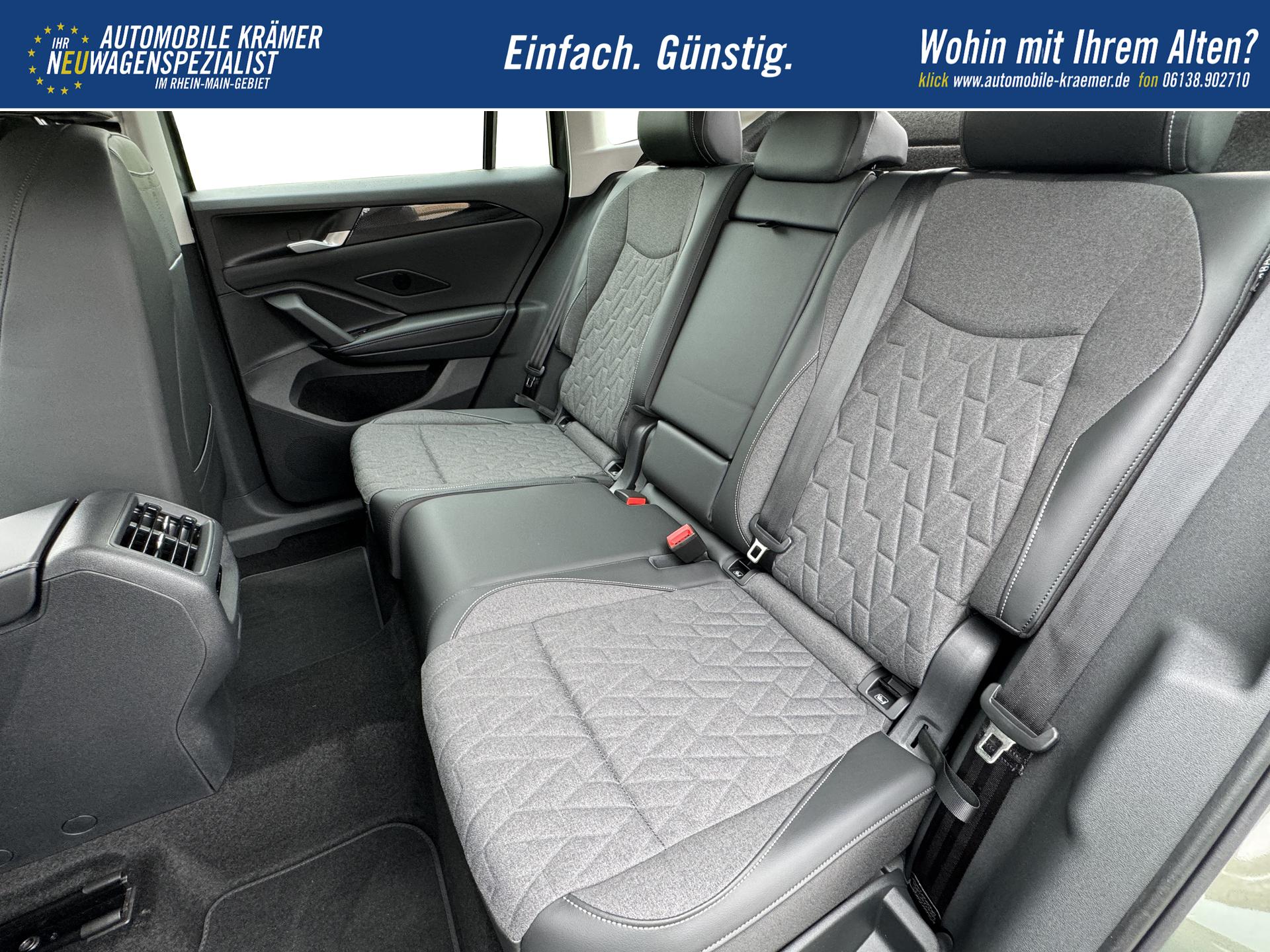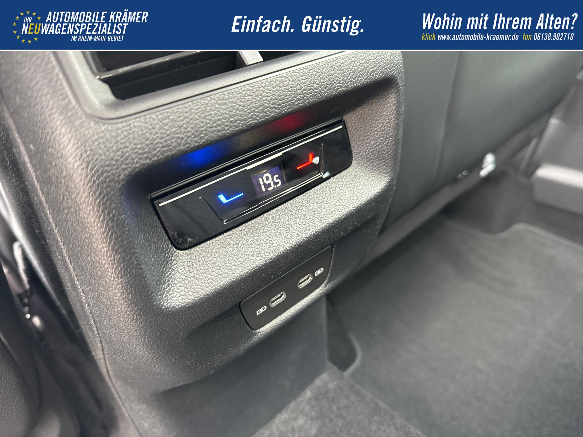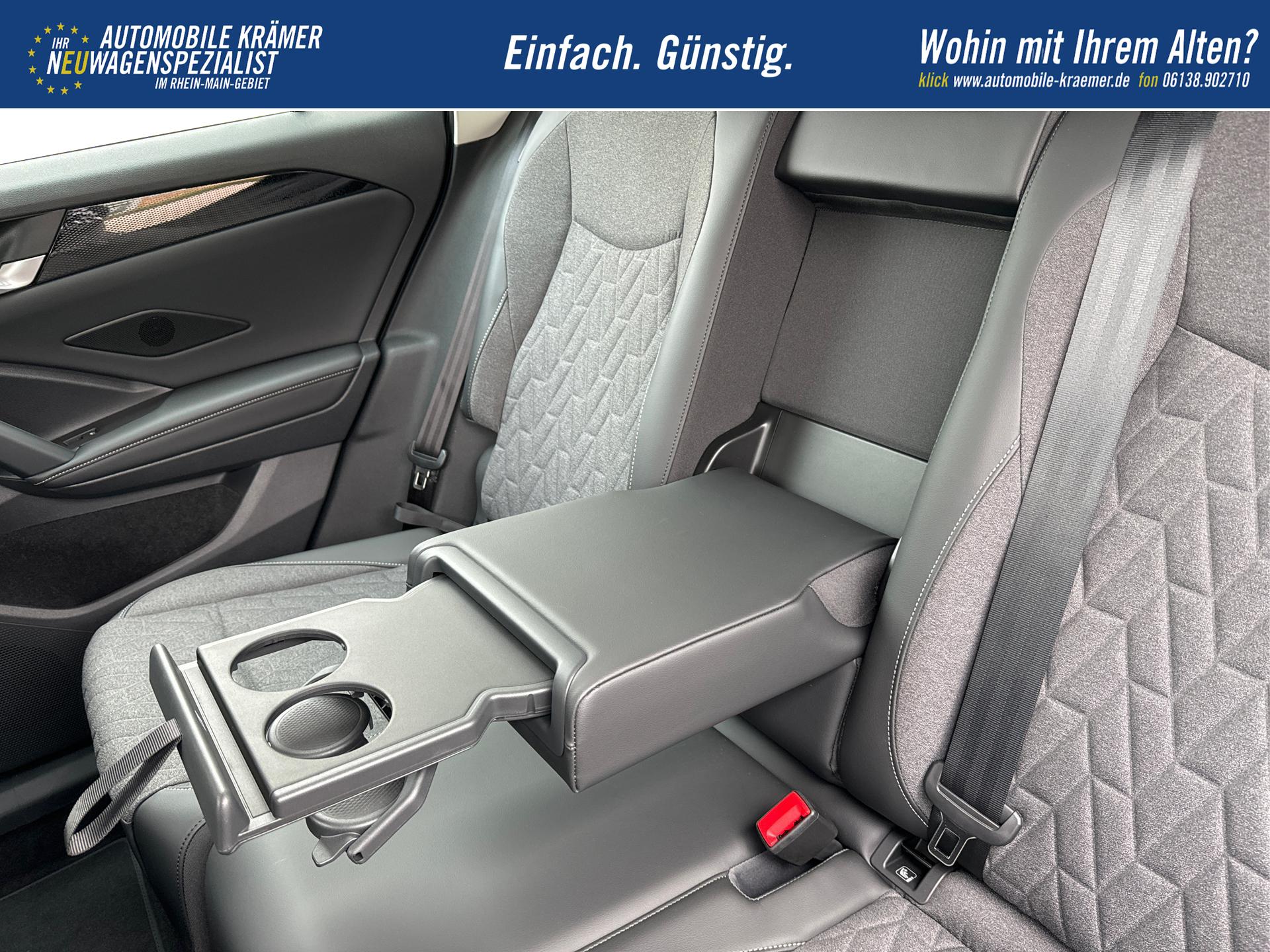 • Mittelarmlehne vorn mit Ablagefach, 2 Belüftungsöffnungen hinten, 12-V-Steckdose vorhanden